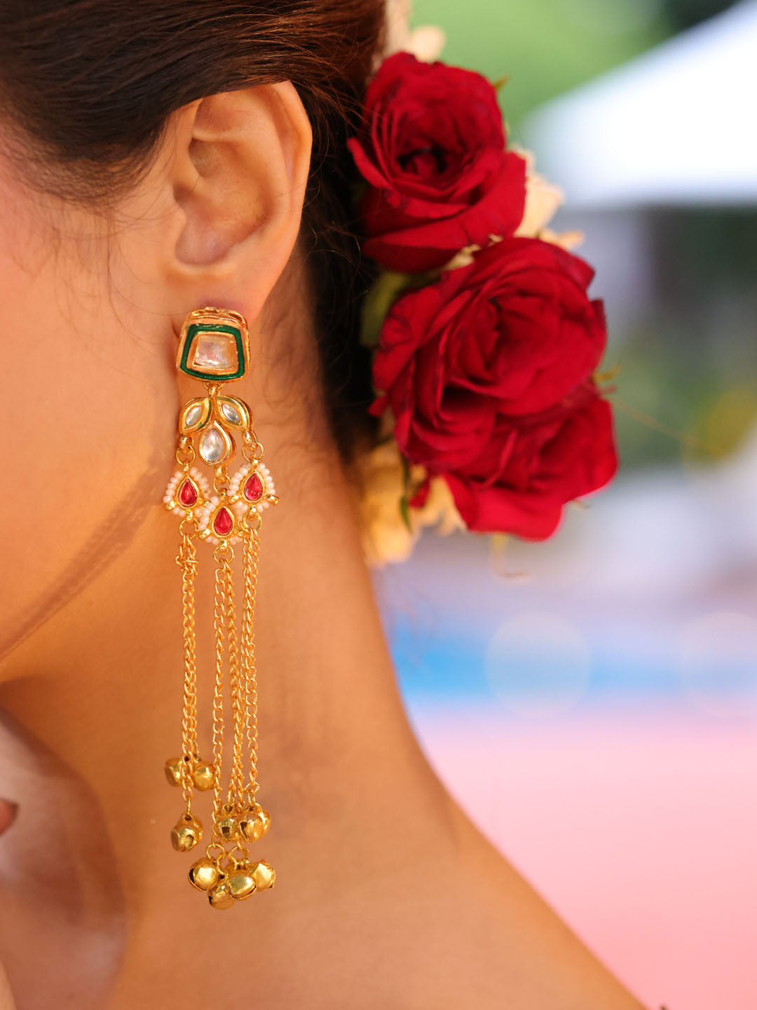 Charming danglers with ghungroo bells that sway and sparkle with every step. A perfect blend of fun and elegance for festive or casual ethnic ensembles. Each jingle dances with the joyful spirit of Binni, adding her signature charm to every celebration.