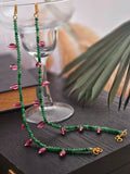 The Aaranya Fusion Anklets offer a mesmerizing blend of grace and vibrant charm. Featuring striking green onyx beads paired with bright pink drop-shaped quartz stones, these anklets create a regal yet playful vibe. The unique color combination reflects a perfect fusion of traditional artistry with modern elegance.