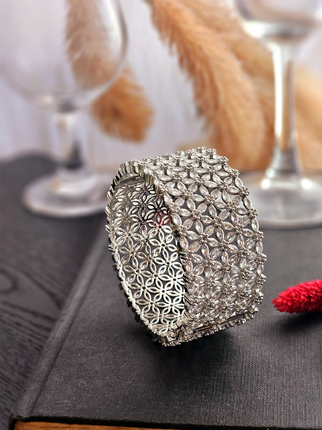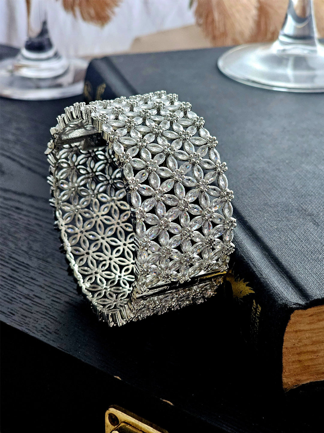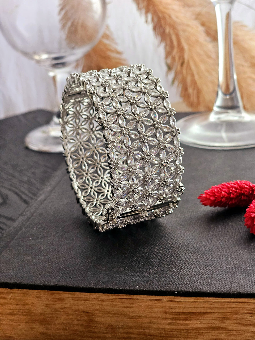 Crafted with precision and grace, its intricate design merges classic elegance with contemporary flair. Whether gracing your wrist at a festive celebration or elevating an evening ensemble, this bangle adds a touch of brilliance to every moment.