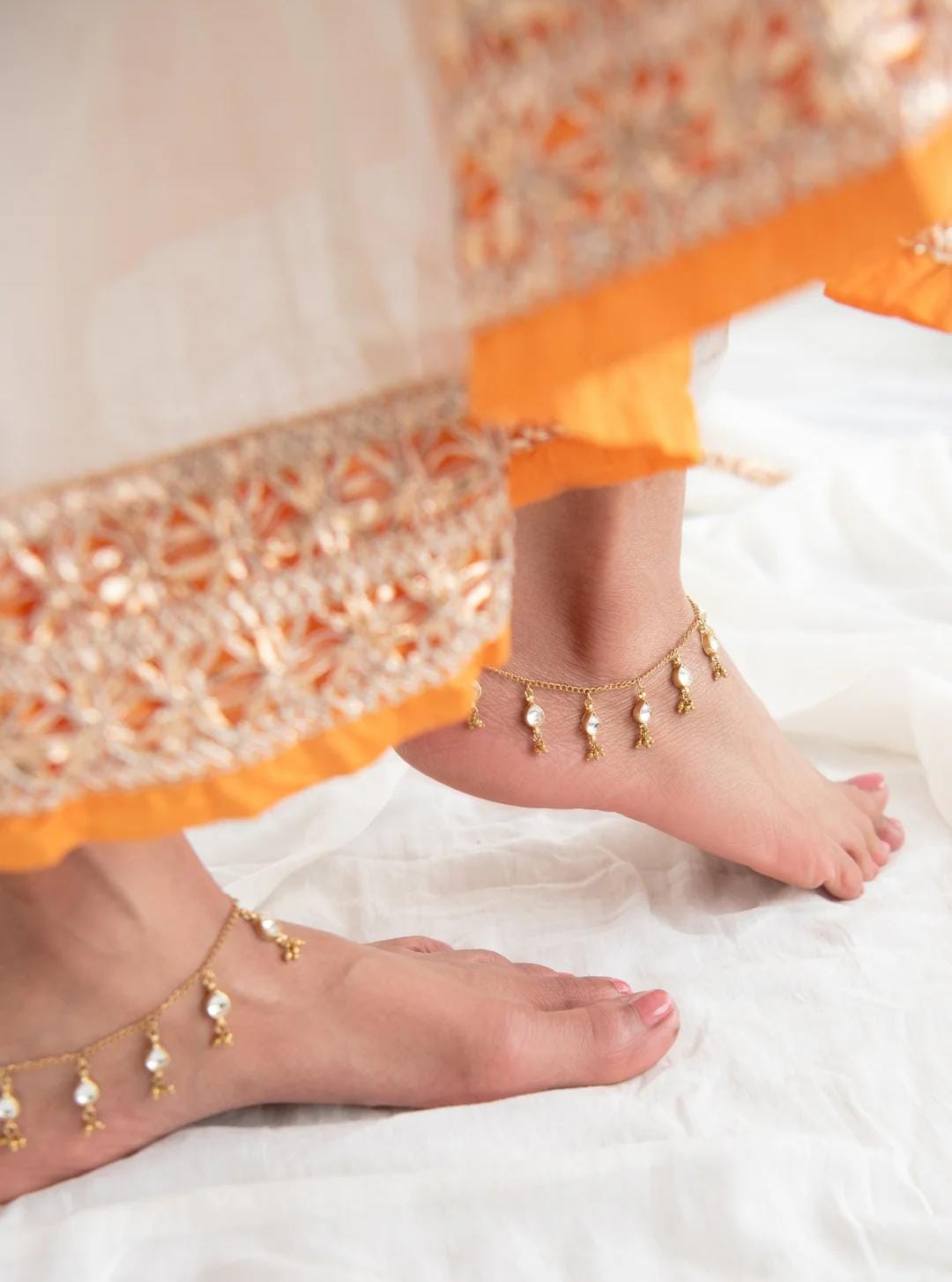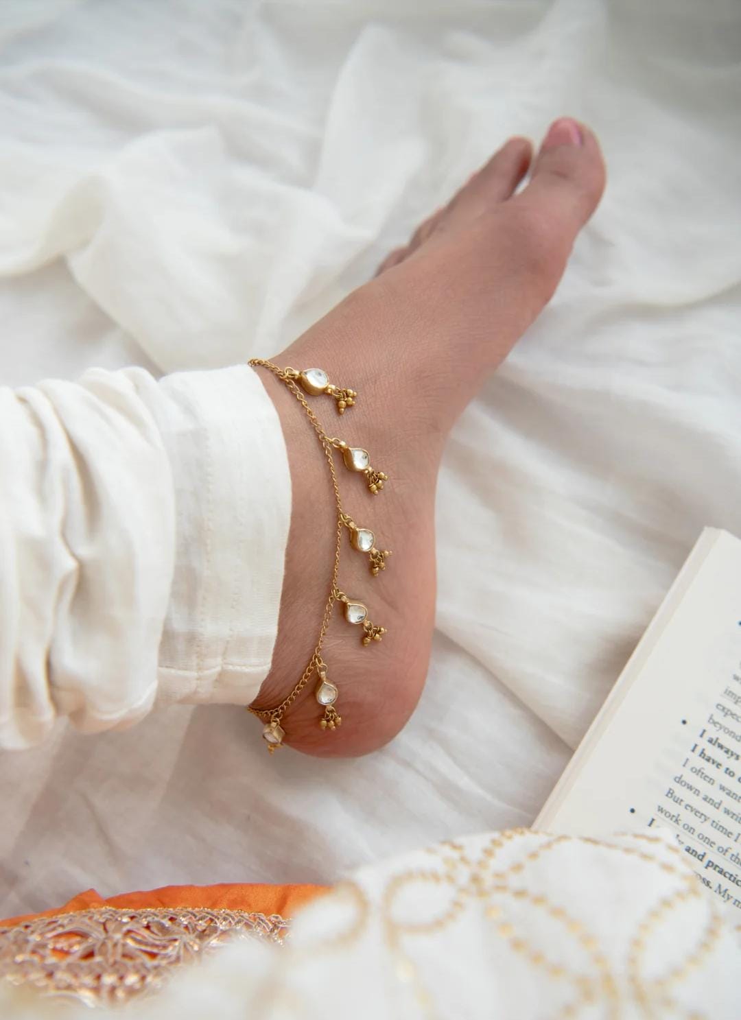 Adorned with playful pachi kundan accents, these anklets infuse charm and tradition into your style. The delicate kundans bring an eye-catching flair, creating a perfect balance between modern elegance and ethnic appeal.