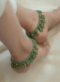 A harmonious fusion of traditional aesthetics and playful elegance, these anklets effortlessly elevate your festive attire. The vivid green hues and unique elements make them the perfect choice for adding a refined yet spirited touch to your look.