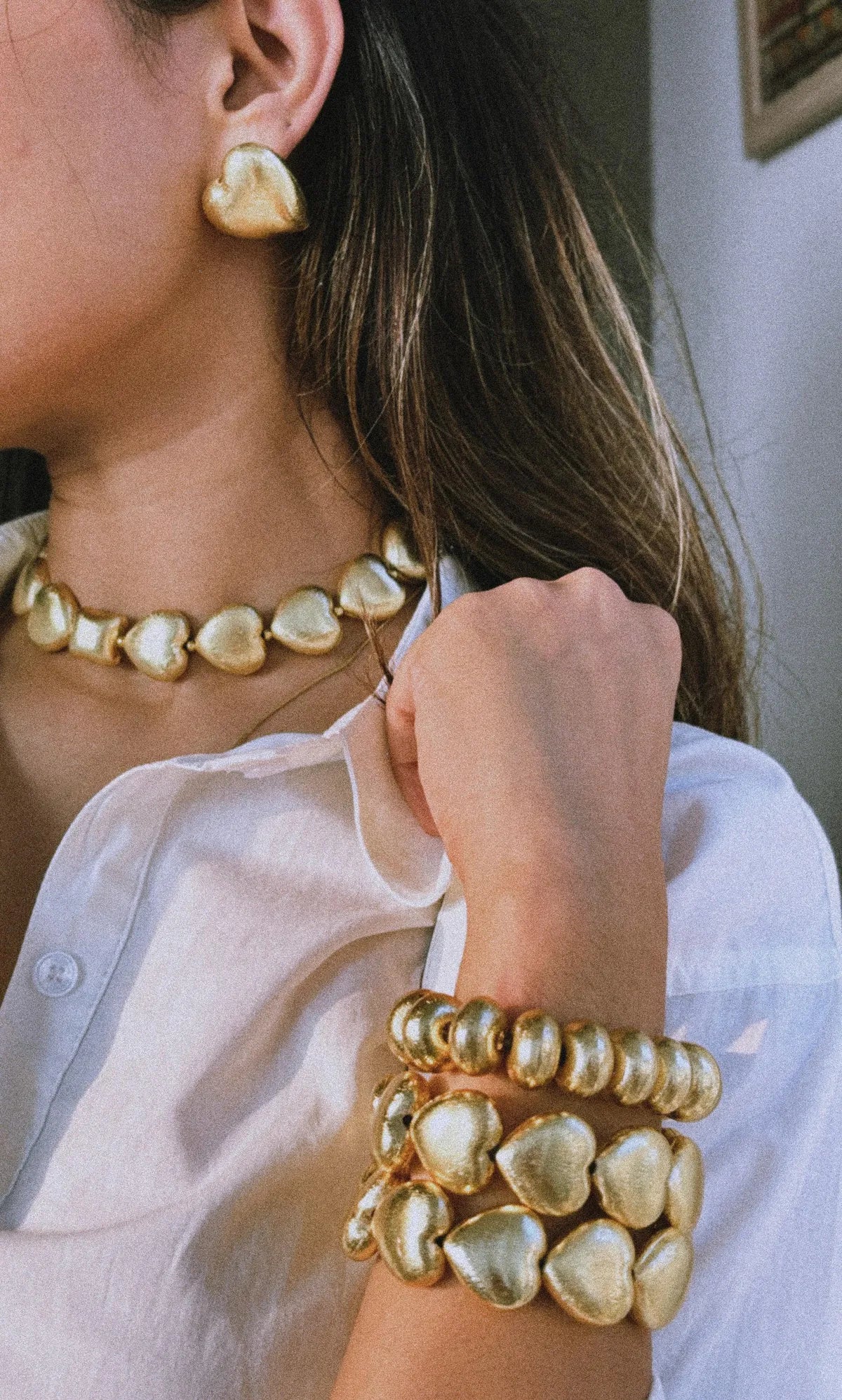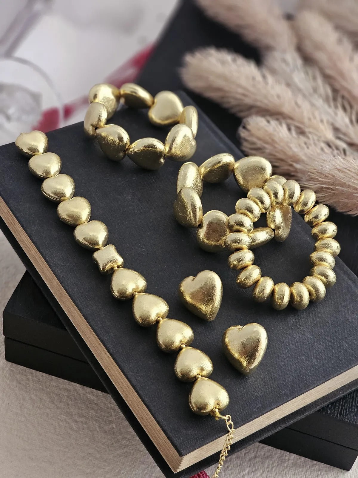 Perfect for special occasions or everyday grace, this set combines the themes of love and beauty with an air of sophistication. Whether as a personal treasure or a meaningful gift, the Heart-Shaped Brass Jewelry Set is a timeless addition to any collection.