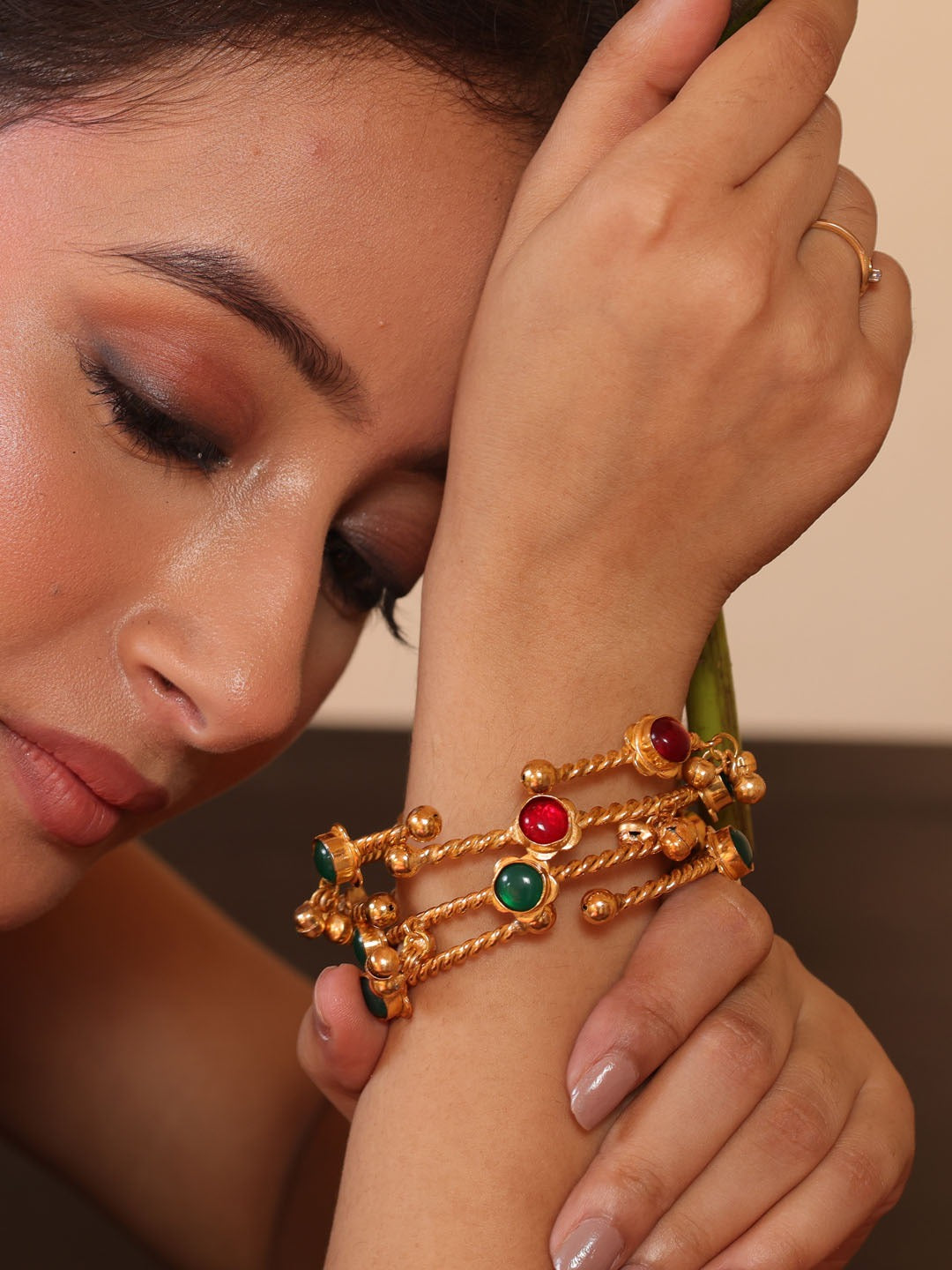 Their versatile design makes them perfect for both festive attire and modern ensembles, adding a touch of regal allure to every look. Delicate yet bold, these bangles embody the beauty of fusion artistry — a graceful statement of sophistication and tradition, true to Binnis style.