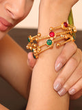 A captivating union of elegance and craftsmanship, the Glass Stone Fusion Brass Bangles gleam with timeless charm. Crafted in rich brass and finished in antique golden polish, each bangle is adorned with radiant glass stones that reflect light with a soft, luxurious glow.
