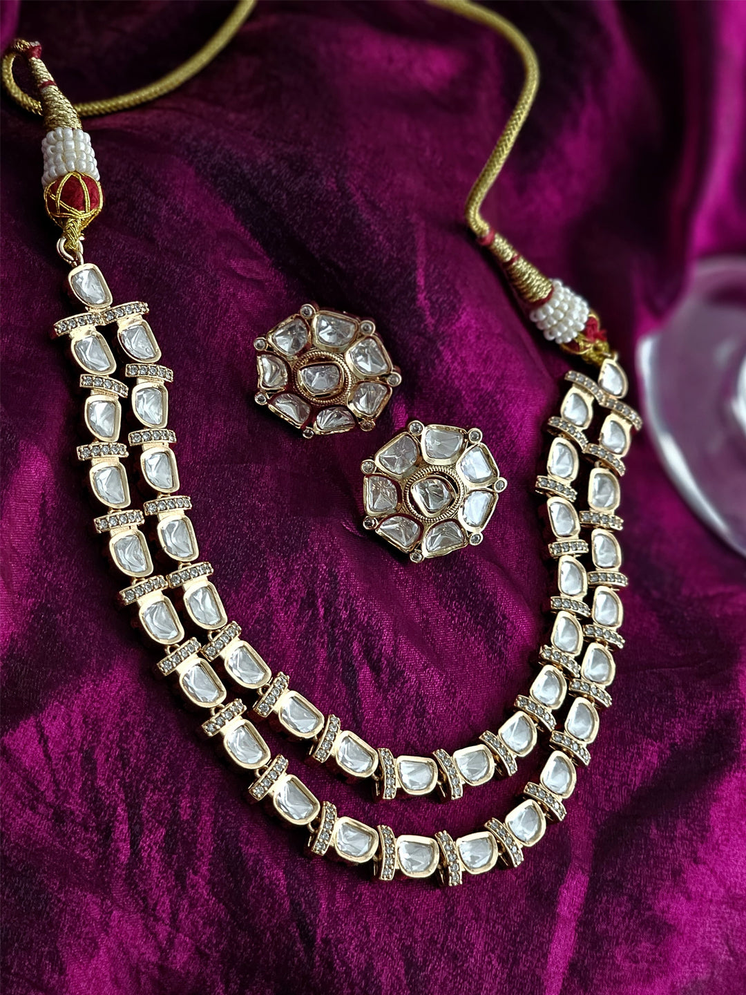 Complementing the necklace are matching Mojonight stone stud earrings, designed in a delicate flower shape that adds a touch of charm and femininity. Perfect for festive celebrations or elevating your everyday style, this set is a radiant choice for the modern muse.