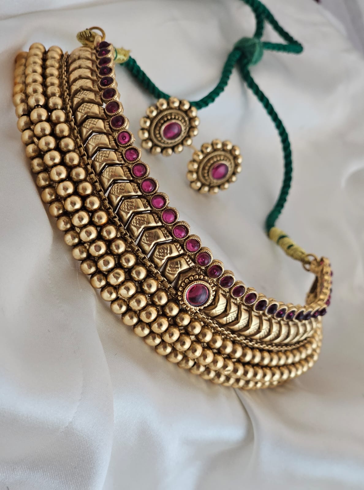 The Kamaniya Necklace Set is a radiant celebration of elegance, where soft pink pearls meet the warm glow of gold, creating a timeless harmony of beauty and grace. Each pearl reflects delicate femininity, while the golden accents whisper tales of luxury and charm.