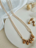 Eshanya Lustrous Gold and Pearl Long Necklace Set