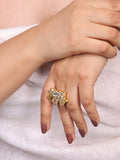 Set in a durable brass base with an adjustable band, this statement piece combines tradition with modern wearability. Perfect for festivals, celebrations, or adding a touch of heritage to your everyday look, this ring is a testament to grace and grandeur.