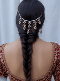 The Pearl Veil rests like a gentle whisper upon the hair, where a chain of pure white pearls glimmers softly. Golden accents and a delicate drop of white pearl sway with every movement, catching the light like morning dew on petals. Ethereal, graceful, and timeless, it transforms every hairstyle into a quiet moment of magic from Binnis.